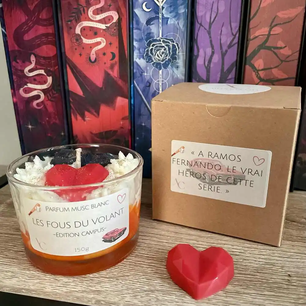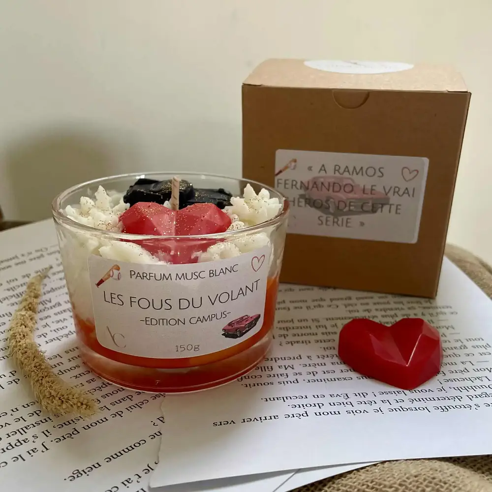 Prêt(e) à embarquer pour un tour sur le campus ? Inspirée de l’univers déjanté de CS Quill, cette bougie rend hommage à Amy et sa fameuse voiture (oui, celle-là même qui en a vu des vertes et des pas mûres 😏) et le cœur rouge il faudra arriver jusqu’au tome 4 pour avoir la référence !