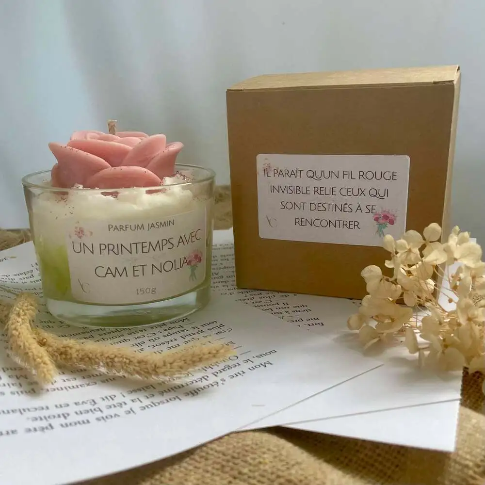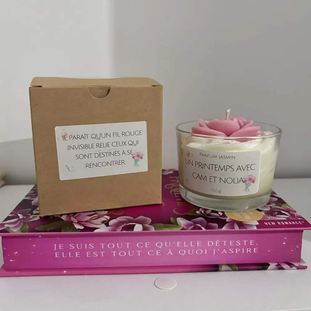 Bougie inspirée de Un printemps pour te succomber de Morgane Moncomble. C’est un hommage à l’univers doux, romantique et plein d’émotion du roman !